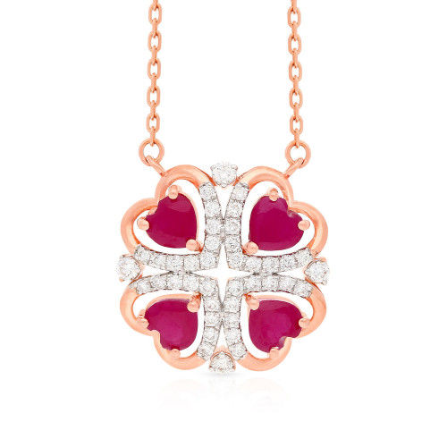 Dainty Red Heart 18 Karat Rose Gold Mine Diamond Pendant MGNHTH066PN1