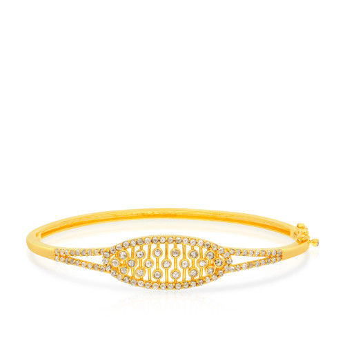 Sleek Oval 22 karat Yellow Gold Gemstone Uncut Diamond Bangle EGNREG020OB1